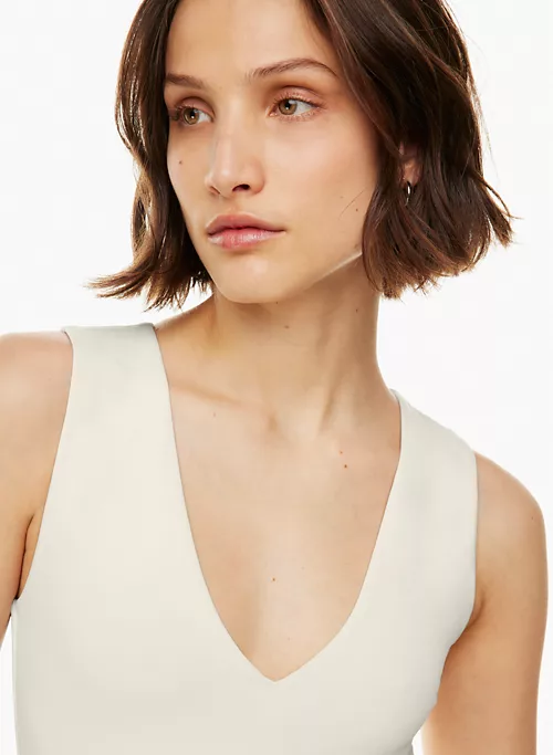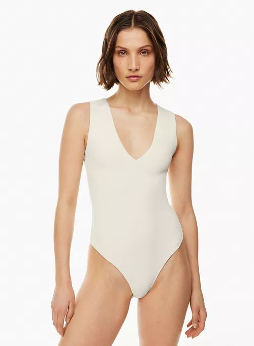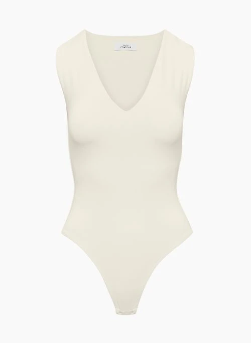 This is a V-neck muscle bodysuit with a thong-cut bottom for seamless wear. It’s made with Babaton’s signature Contour — luxe, ultra-flattering fabric coveted for its smoothing effect and second-skin feel. Essential for every body.