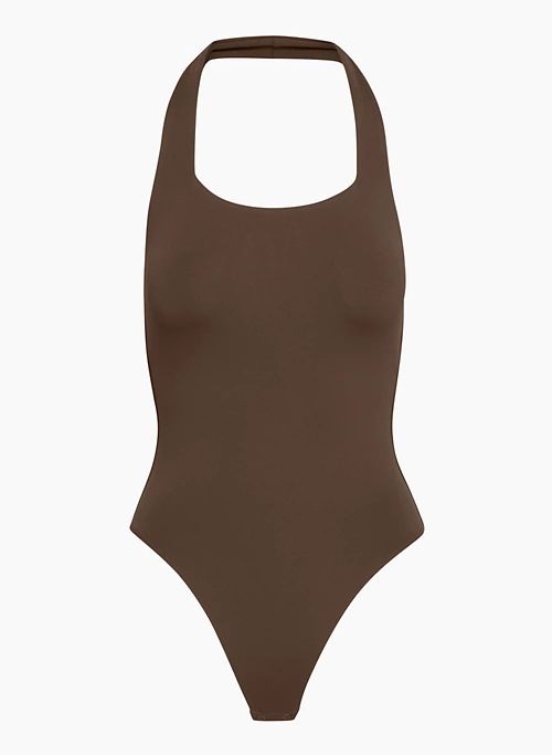 This is a halter bodysuit with double-layer fabric and a thong-cut bottom. It’s made with Babaton’s signature Contour — luxe, ultra-flattering fabric coveted for its smoothing effect and second-skin feel. Essential for every body.