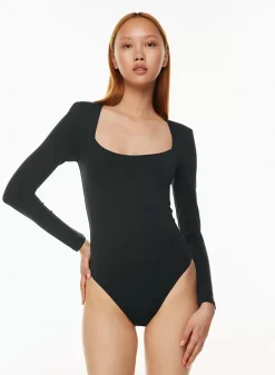 This is a square-neck long-sleeve bodysuit with shoulder pads, a thong-cut bottom and double-layer fabric for a smooth, supportive fit. It’s made with Babaton’s signature Contour — luxe, ultra-flattering fabric coveted for its smoothing effect and second-skin feel. Essential for every body.Â