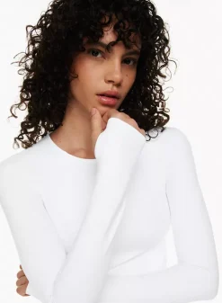 This is a layer-friendly crew-neck tank. It’s made from lightweight, drapey fabric with a smooth feel.