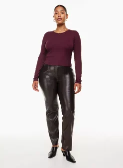 This is a long-sleeve turtleneck with a slim fit and a slightly cropped length. It’s rib-knit with a fine, soft blend.